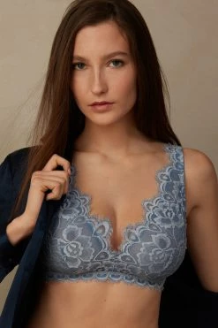 Best Pirce ๐ Intimissimi ๐ฉ Women Pretty Flowers Triangle Bra In Lace Intense Blue/vanilla ๐