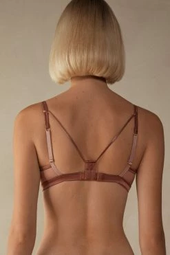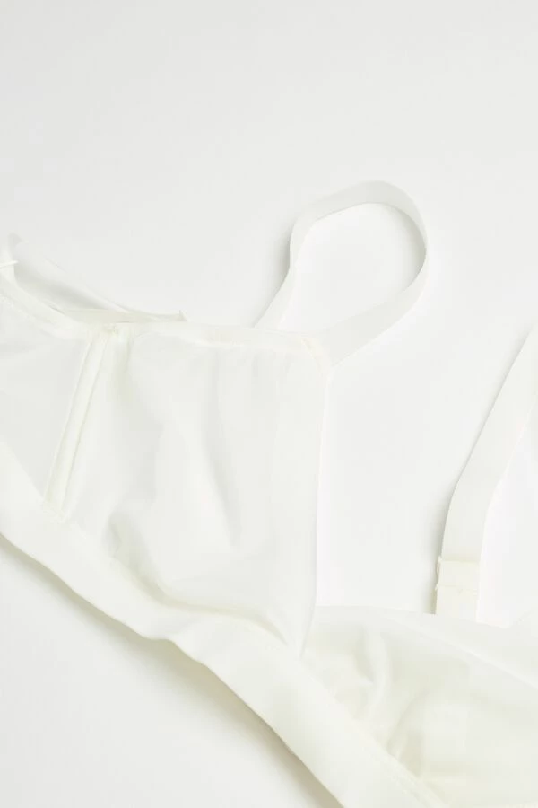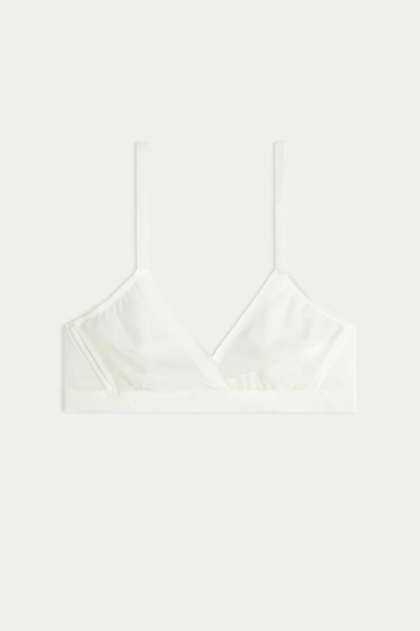 Emma non-wired triangle bra in soft tulle-effect fabric, with boning at the sides designed specifically to better envelop the bust. Featuring a raw-cut finish on the bust and flat, seamless and completely adjustable shoulder straps.